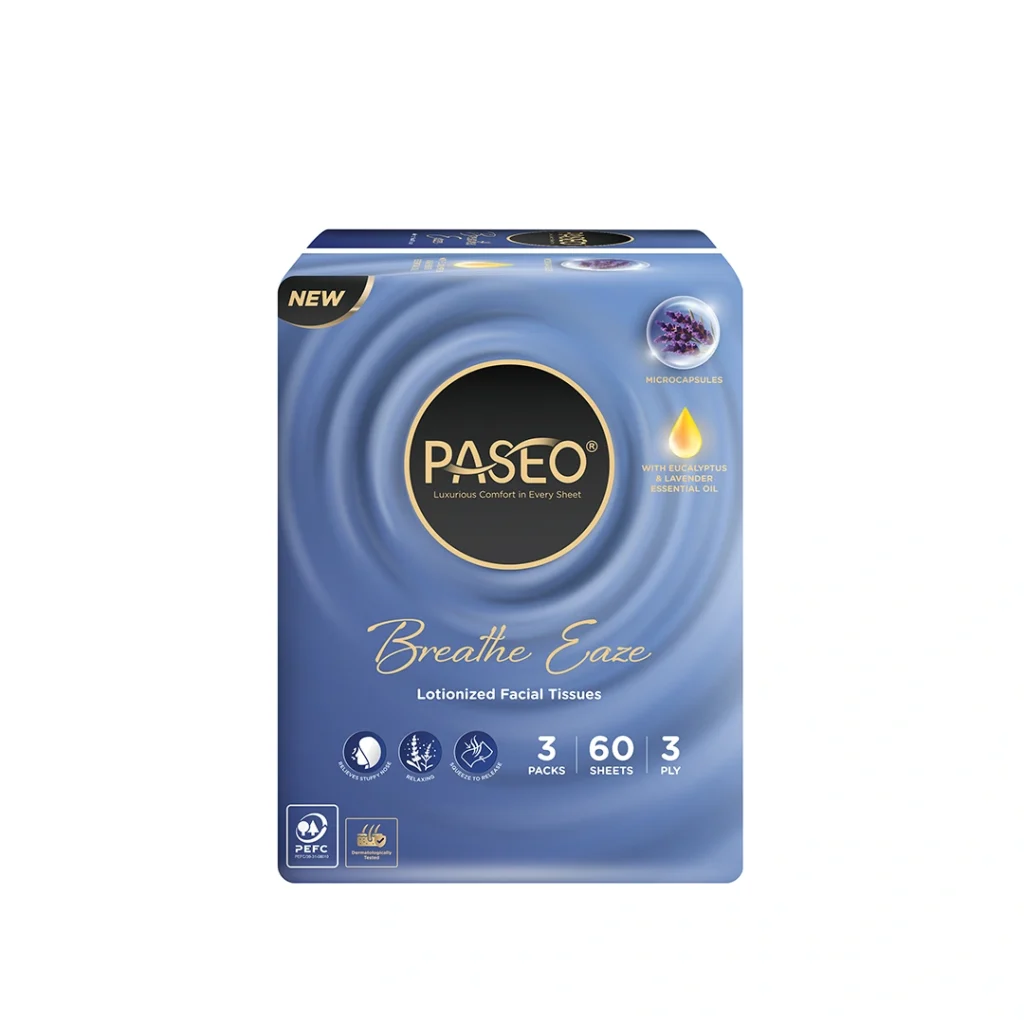 Experience soothing freshness with Paseo Breathe Eaze – powered by advanced microcapsules that infused with dual aroma essential oils.